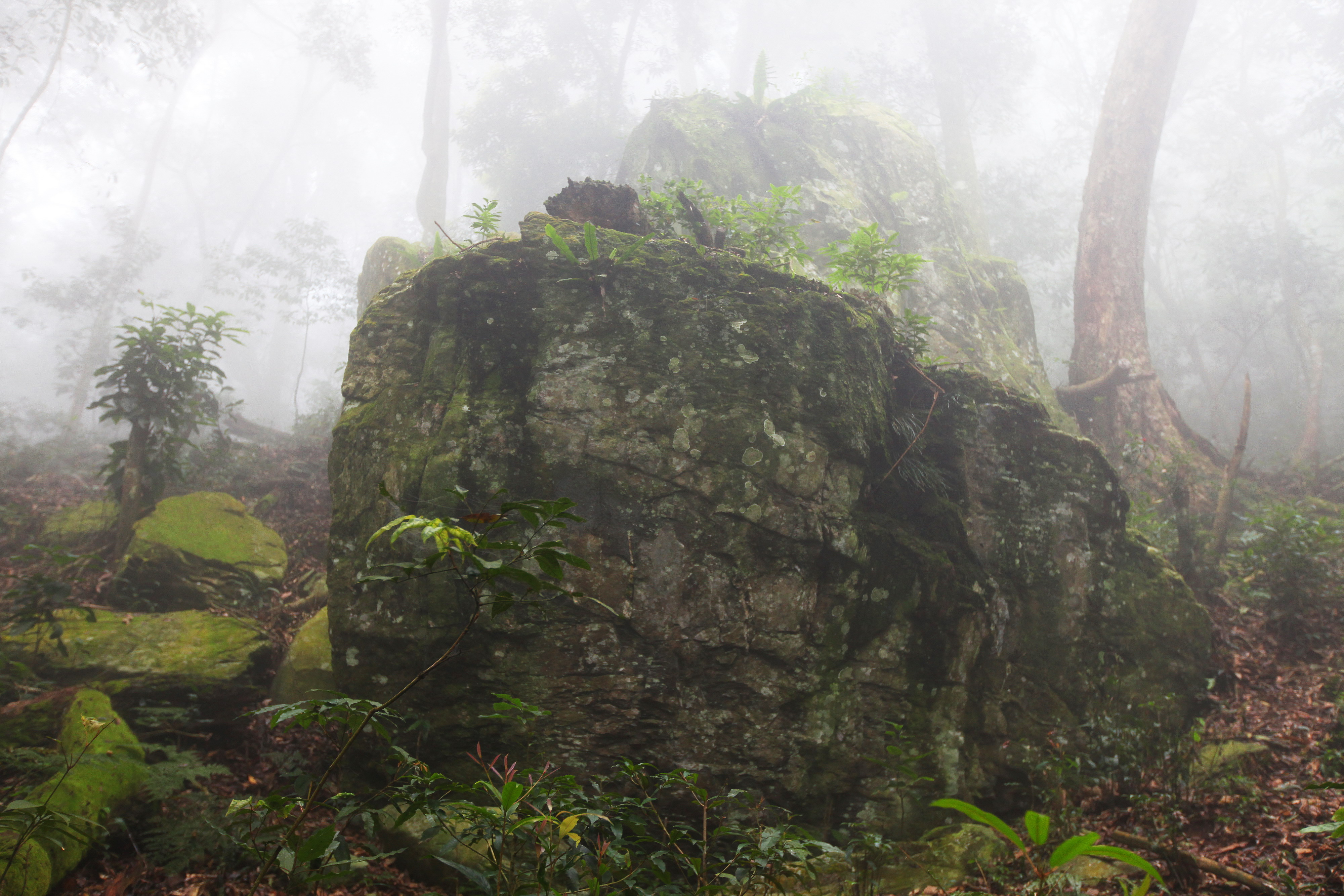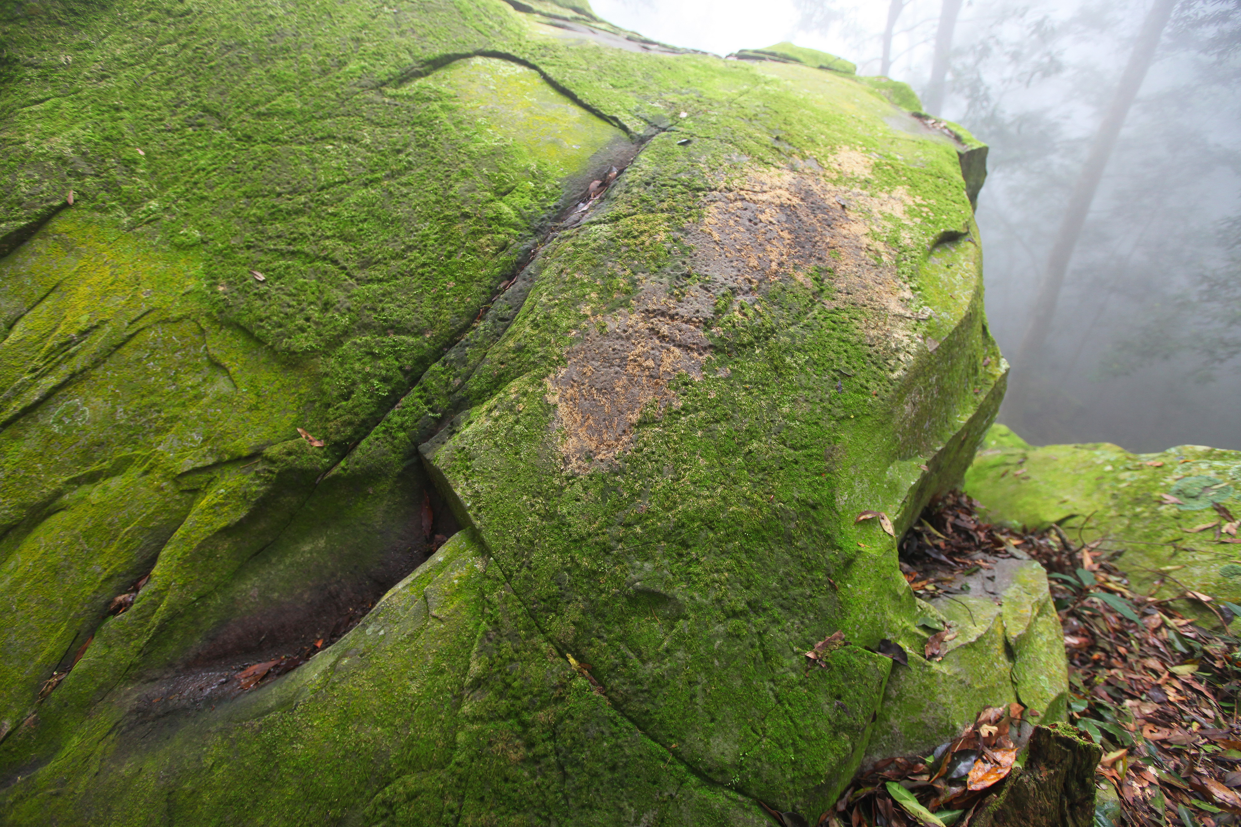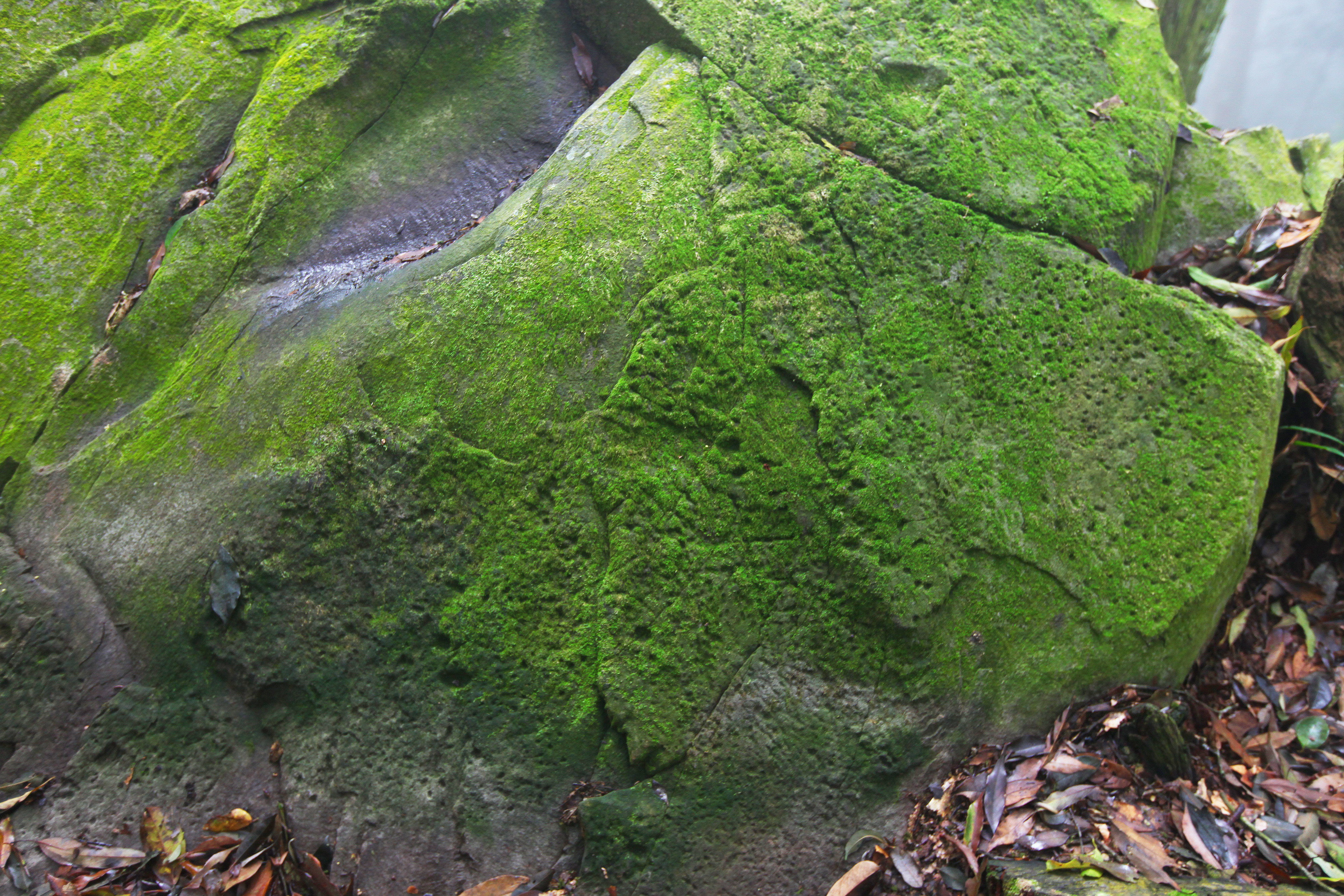 有原住民獵徑通過,且地勢較平緩容易到達,北側亦有獵寮遺址。岩雕面下端隱入土面,部分紋飾端部在土中無法辨識。岩體右前則有一數約60公分的立木緊鄰,部分紋飾遭到覆蓋。岩石下端之泥土落葉隨著時間增加而漸漸增厚,比對1984年高業榮所繪製的圖案目測可知目前的土面已增高數十公分,樹徑亦增大。岩雕表面有枯葉、青苔及沙土覆蓋,部分地區剝落、破損。